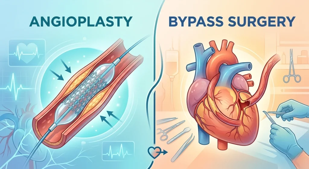 When patients compare angioplasty vs bypass surgery, they often focus on how the procedures differ in terms of complexity, recovery, and effectiveness.